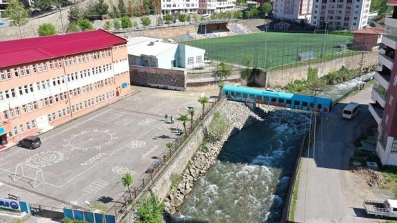 AA'nın haberine göre, öğrencilerin, Maçka Deresi'nin üzerinden yolun karşısına güvenle geçebilmelerini sağlamak amacıyla başlatılan proje çerçevesinde, Türkiye Cumhuriyeti Devlet Demiryollarına (TCDD) ait hurdaya çıkmış vagon temin edildi.