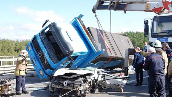 Devrilen kamyonun vinç yardımıyla kaldırılmasının ardından otomobildeki sürücü, araçtan çıkarıldı. Sağlık ekiplerinin müdahale ettiği sürücü Öz'ün hayatını kaybettiği belirlendi.