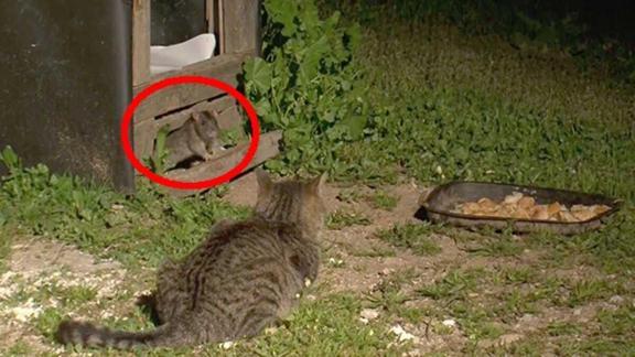 Antalya’nın Muratpaşa ilçesine bağlı Doğuyaka Mahallesi’nde iri lağım fareleri kedilerin korkulu rüyası oldu. Mahallelilerin kediler için yaptığı yuva önündeki kaplara koyduğu yemeklere dadanan fareler, yemeklerin konmasıyla birlikte saklandıkları yerlerden çıkarak yemekleri yiyor. Kediler ise kaplar başında adeta nöbet tutuyor.