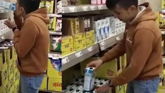 Bir kişinin market rafındaki süt kutusunu açıp içtikten sonra tekrar rafa koymasına ilişkin görüntülerin sosyal medyada yer almasının ardından İl Emniyet Müdürlüğü ekipleri çalışma başlattı.