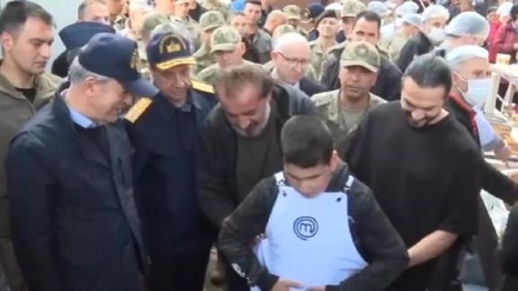 Şef Yalçınkaya bu anları, "Görme engelli kardeşimiz Yahya'ya, Milli Savunma Bakanı'mız Sn. Hulusi Akar ile MasterChef Türkiye önlüğü giydirdik" ifadelerini ile paylaştı.