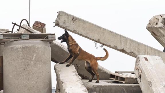 Malinois, Labrador ve Border Collie ırklarından beş köpeğin bulunduğu birimin yeni üyesi Momo'ya, arama kurtarma köpeği eğitimi verilmeye başlandı.