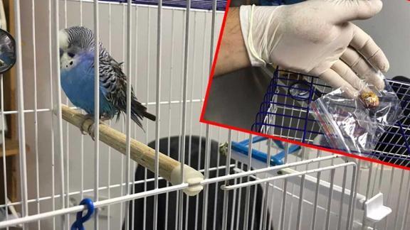 Zonguldak'ta Ercan Akkuş'a ait, 5 yaşında olan ve 33 gram ağırlığındaki 'Cumhur' isimli muhabbet kuşunun karnından 8 gram ağırlığında tümör çıkarıldı.
