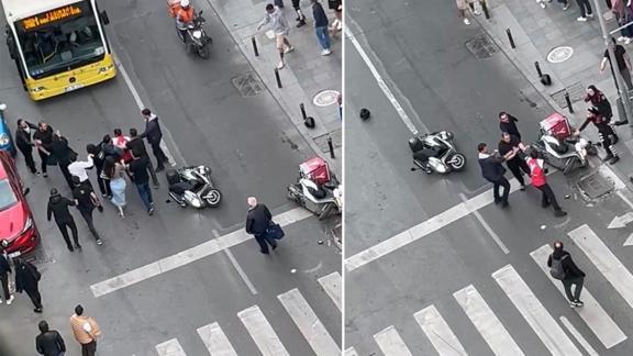 Kısa süre sonra tekrar birbirine giren motosiklet sürücüsü ile kurye caddeyi adeta boks ringine çevirdi.