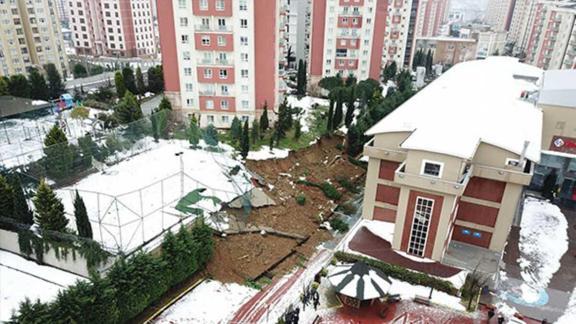 Olay saat 12.00 sıralarında Başak Mahallesi Ertuğrul Gazi Caddesi'ndeki özel bir okulda meydana geldi. Okul ile bir siteyi ayıran yaklaşık istinat duvarı okulun bahçesine çöktü. Çökmenin etkisiyle okulda çalışan görevliler ve yıkılan istinat duvarının yanında bulunan bina sakinleri panik yaşadı. Okulların kar tatili nedeniyle kapalı olması büyük bir faciayı önledi. Site içerisinde bulunan bir halı saha da çökme nedeniyle zarar gördü. İhbar üzerine olay yerine polis ve itfaiye ekipleri sevk edildi. Ayrıca olay yerine belediye ekipleri de sevk edildi. Olay yerine gelen ekipler şerit çekerek inceleme yaptı.