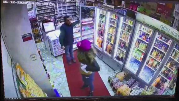 Yaşanan olayı anlatan büfe sahibi Eşref Oğuz, " Bir müşteri vardı içeride o çıktıktan sonra kadın girdi içeri. Bir şeyler sordu bana. Sonra bana 'Meyve suyu verir misin?' dedi. Para benim sağ cebimdeydi. Onun da elinde poşet vardı. El çabukluğu ile parayı aldı. Dışarı doğru kovmak için müdahale ettim o esnada soyunmaya başladı. Ondan sonra kaçıp gitti. Sonradan paranın olmadığını fark ettim. Başka yerlerde de benzer taktikle hırsızlık yapmış." şeklinde konuştu.