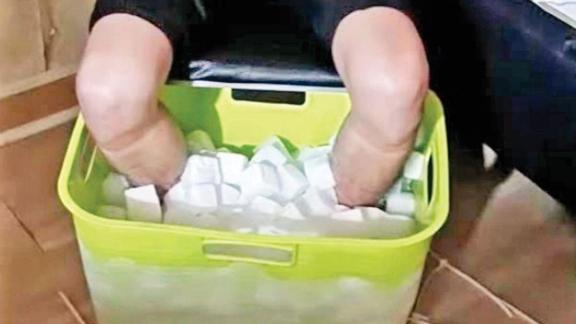 Tayvan'da 23 yaşındaki bir çocuk, 10 saatten uzun süre 'kuru buz dolu bir kovaya daldırarak' iki bacağının da kesilmesine neden oldu. Genç adam ameliyata alındıktan sonra, sağlık personeli ayaklarında donma olduğunu ancak 'çorap veya ayakkabı izi olmadığını' ve yaralanmaların 'düzgün ve simetrik' olduğunu söyledi.