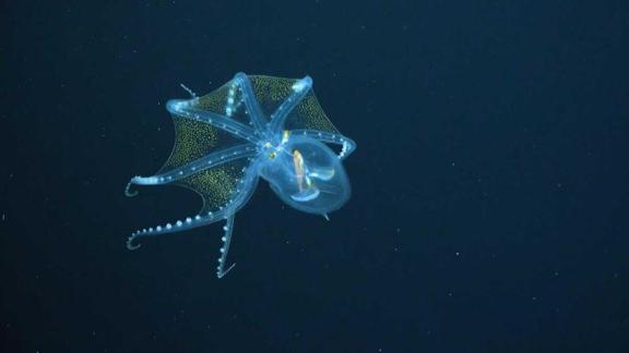 Okyanuslarda bilimsel araştırma ve keşif yapan Schmidt Okyanus Enstitüsü, Pasifik Okyanusu'nda bulunan Kiribati'ye ait mercan adaları ve koral resifi zinciri Phoenix Adaları çevresinde yaptığı 34 günlük araştırma ve keşif seferi sonucunda 'Cam Ahtapot' görüntülemeyi başardı.