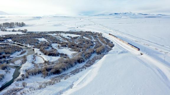 Sivas, Erzincan ve Erzurum'da mola veren trenle gelen yerli ve yabancı turistler, güzergah boyunca karla kaplı Anadolu'nun içlerinde "masalsı yolculuk" yapıyor.