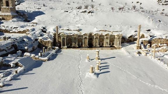 DHA'nın haberine göre, UNESCO Dünya Miras Geçici Listesi'nde yer alan Sagalassos Antik Kenti'nde, yarım metreyi aşan kar kalınlığıyla güzel manzaralar ortaya çıktı.