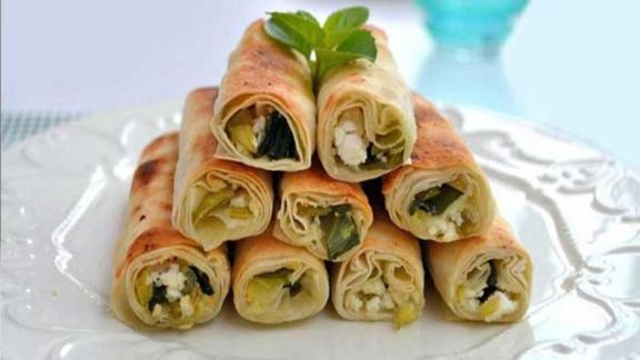 Dilediğiniz miktarda iç harçtan koyarak böreğimizi yanlardan katlayıp yufka boyunca sarıyoruz.
