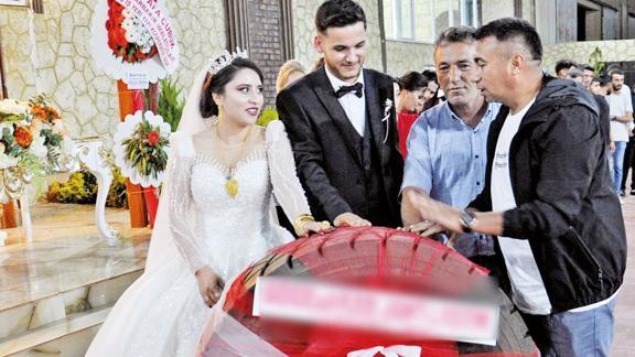 Gaziantep'in İslahiye İlçesi'nde yaşayan TIR şoförü Alican Yıldırım ile Büşra Yıldırım (23) çifti bir düğün salonunda hayatlarını birleştirdi. Düğüne katılanlar halaylar çekip eğlenirken, takı törenine geçildi. Davetliler gelin ve damada altın takarken, damadın oto lastik işi yapan arkadaşı İbrahim Göğebakan ise süslediği ve piyasa değeri 15 bin TL olan TIR lastiğini hediye etti. Davetliler alkışlarla çifttin mutluluğuna ortak olurken, Alican Yıldırım, hediye edilen TIR lastiği ile şaşkınlık yaşadığını söyledi. Göğebakan ise çifte mutluluklar dileyerek, şoför arkadaşının lastiğe ihtiyacı olabileceğini düşündüğünü belirtti.