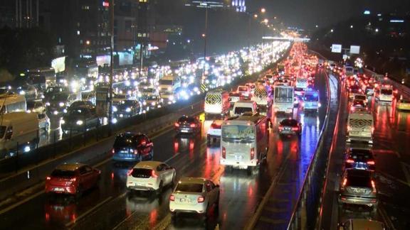 İstanbul'da akşam saatlerinden itibaren etkili olan sağanak yağış nedeniyle trafik yoğunluğu oluştu.