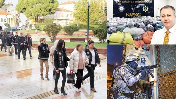 Uyuşturucu madde imal eden ve satan zehir tacirlerine yönelik 'Narkogüç' operasyonlarının 38'incisi tamamlandı. İçişleri Bakanı Ali Yerlikaya, 48 ildeki eşzamanlı operasyonların detaylarını sosyal medya hesabından paylaştı. Sadece Van'da 4 ton 600 kilogram toz esrar ele geçirildi. İstanbul, Diyarbakır, Hakkari, Zonguldak, Edirne, Bursa, Tekirdağ ve Osmaniye'de de toplam 1 ton 791 kilogram uyuşturucu bulundu. 391 şüphelinin yakalandığını bildiren Yerlikaya, mesajında "Halkımızı zehirleyen uyuşturucu tacirleriyle, terör örgütleriyle ve organize suç örgütleriyle mücadelemiz kararlılıkla devam edecek" ifadesini kullandı.