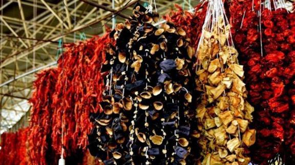 Muğla'da kış aylarında tüketilmek amacıyla bu yılın mahsulüyle hazırlanan bamya, biber, kabak ve patlıcan gibi sebzelerin kuruları, tezgahlardaki yerini alarak, satışa sunuldu. Rengarenk görüntüsüyle pazar yerini süsleyen kurutulmuş sebzeler içinde en dikkat çeken ise kilosu 200 lira ile patlıcan oldu.