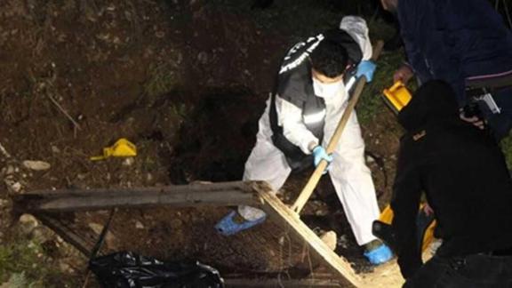 Ekipler, çukurdaki yanmış araç lastiklerinin arasında insan kemikleri olduğunu tespit etti.