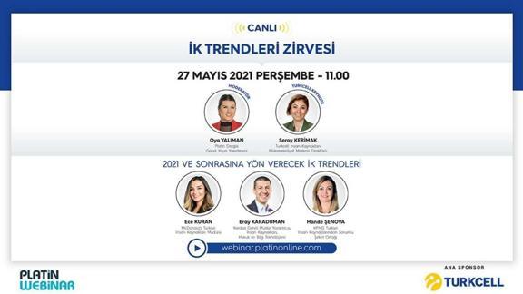Webinar konuşmacıları arasında Mc Donald's Türkiye İnsan Kaynakları Müdürü Ece Kuran, Kordsa İnsan Kaynakları, Hukuk ve Bilgi Teknolojileri Genel Müdür Yardımcısı Eray Karaduman, KPMG Türkiye İnsan Kaynaklarından Sorumlu Şirket Ortağı Hande Şenova yer alacak ve 2021 ve sonrasına yön verecek İK trendleri ve uygulamaları konuşulacak.