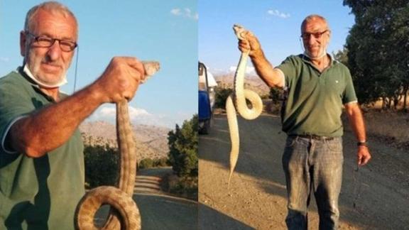 İHA'da yer alan habere göre, öğle saatlerinde meydana gelen olayda yılanın kendisine saldırmaya çalıştığını ifade eden Şahin, ani bir refleksle yılanı boğazından yakaladığını söyledi.
