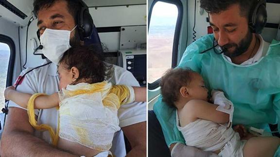ATT Mehmet Canko, mayıs ayında da yine Afyonkarahisar'da üzerine sıcak su dökülmesiyle yanan Beril bebeği, ambulans helikopterde Eskişehir Şehir Hastanesi Yanık Merkezi'ne kucağında taşımıştı.