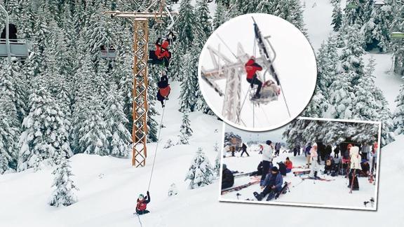 Ekiplerin titiz çalışmasıyla telesiyej kablolarında mahsur kalan tatilciler halat yardımıyla tahliye edildi. İki saat süren kurtarma çalışmalarının ardından herkes rahat bir nefes aldı.