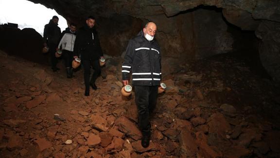 Ekipler tarafından daha sonra ilçeye yaklaşık 10 kilometre mesafedeki mağaraya getirilen küpler, mağaranın yaklaşık 50 metre iç kısmındaki bölümlere bırakılıyor.