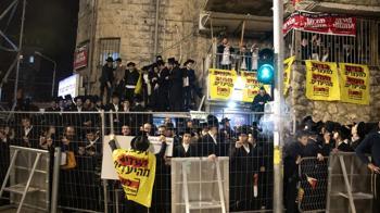 <meta name="description" content="İşgalci İsrail'in Askalan kentinde asker kaçağı ultra-Ortodoks Yahudi öğrencilerin gözaltına alınmasını protesto eden yaklaşık 200 Haredi gösterici, askeri polis komutanı Tuğgeneral Yuval Yamin'in evinin duvarlarından atlayarak bahçeye girdi. Olay sırasında Yamin evde bulunmazken eşi ve çocukları evin içinde mahsur kaldı. Batı Kudüs ve Beni Brak'ta da yollar kapatılırken göstericiler İsrail bayrağı yaktı." />