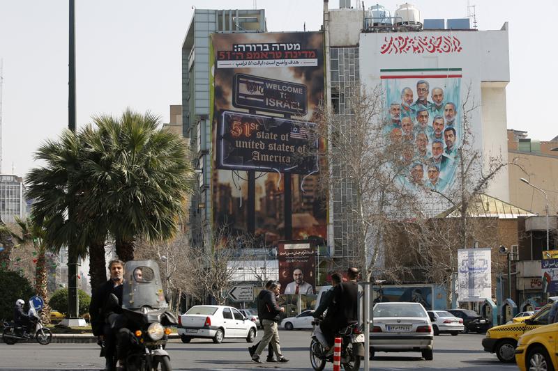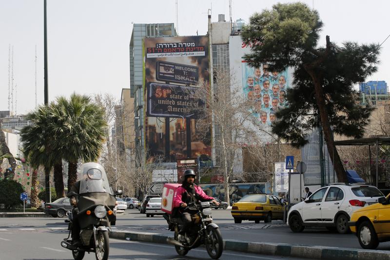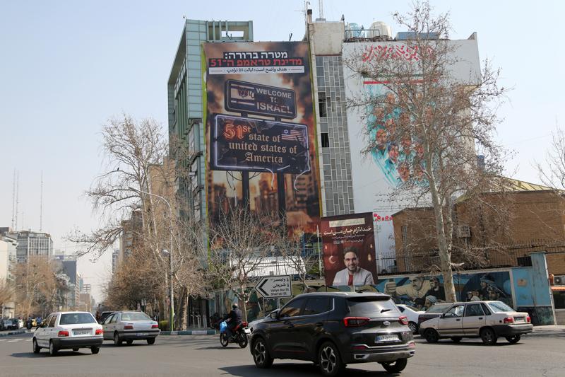 Afişte, Farsça ve İbranice "Hedef açık Amerika'nın 51. Eyaleti İsrail" ifadeleri yer aldı.