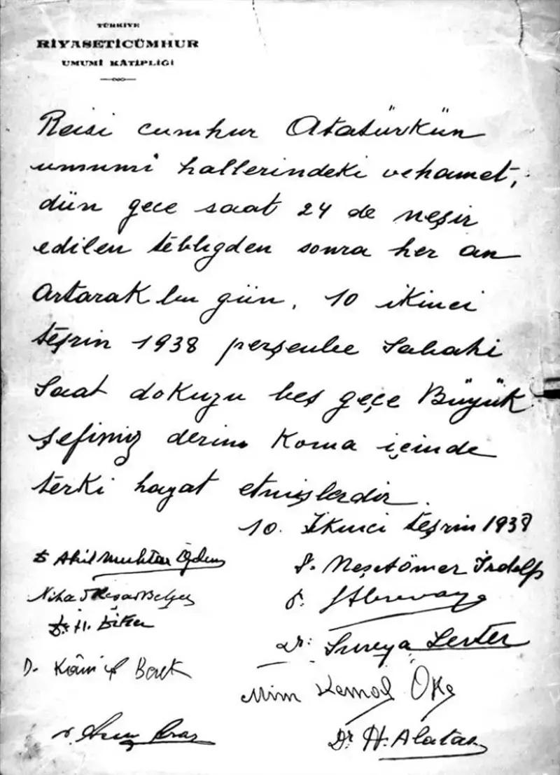 Efendiler, görüyorsunuz ki Cumhuriyet ilanına karar vermek için Ankara'da bulunan bütün arkadaşlarımı davet ederek onlarla görüşüp tartışmaya asla lüzum ve ihtiyaç görmedim.