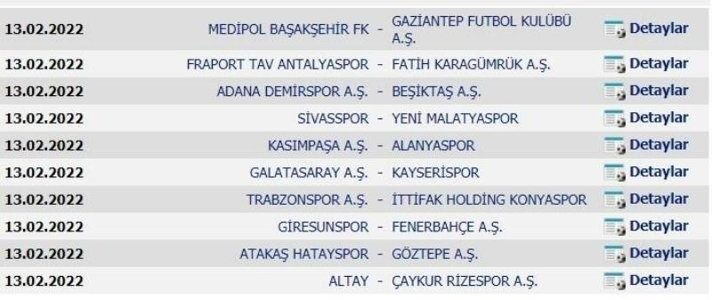 Süper Lig'de 2021-2022 sezonu fikstürü, Türkiye Futbol Federasyonunu Riva'daki idari merkezinde yapılan kura çekimi ile belirlendi. Ligde yeni sezon 13 Ağustos'ta başlayacak ve 27 Aralık'ta ilk yarı sona erecek. 7 Ocak'ta ikinci yarısı başlayacak Süper Lig, 22 Mayıs'ta tamamlanacak. İşte Süper Lig'in 38 haftalık programı...