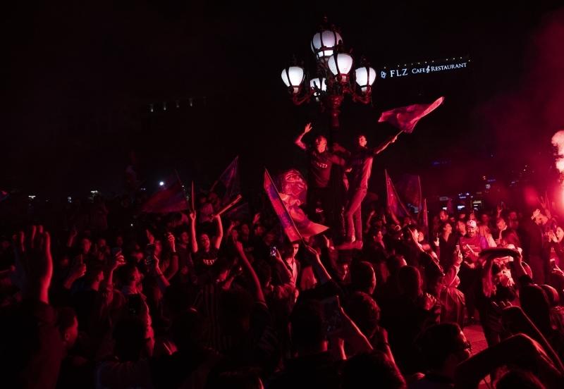 Spor Toto Süper Lig'in 35. haftasında sahasında Fraport Tav Antalyaspor ile 2-2 berabere kalarak şampiyonluğunu ilan eden Trabzonspor taraftarları, Türkiye'nin iki büyük kenti İstanbul ve Ankara'da şampiyonluğu doyasıya kutladı. İşte o kareler...