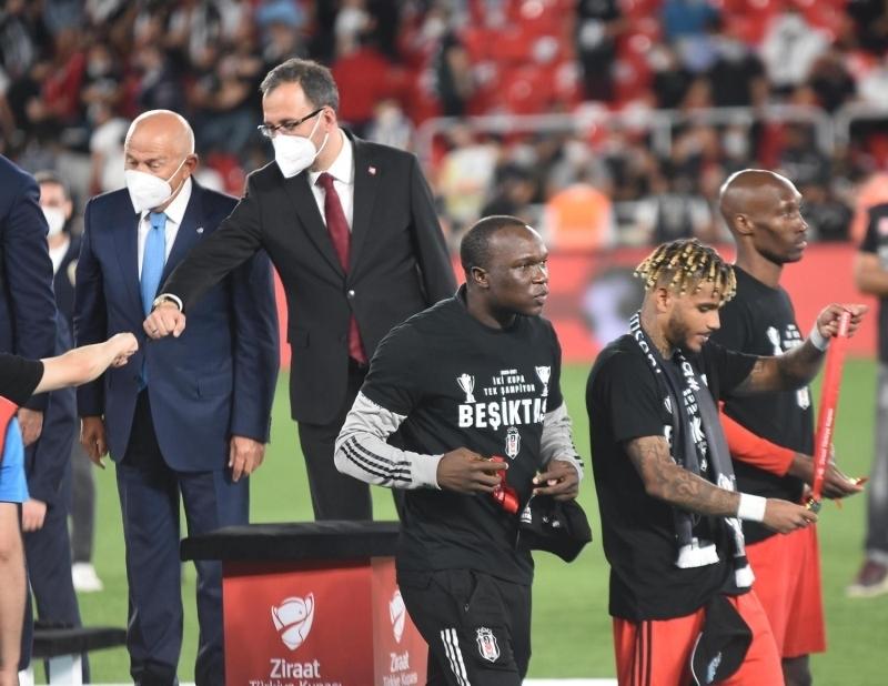 Ziraat Türkiye Kupası finalinde Fraport TAV Antalyaspor'u 2-0 mağlup eden Beşiktaş, 10. kez kupayı kazandı. Süper Lig'i de şampiyon olarak tamamlayan Beşiktaşlı futbolcuların mutluluğu ise görülmeye değerdi. ''İki kupa tek şampiyon Beşiktaş'' yazılı tişört giyen siyah-beyazlılar, tribünlerdeki taraftarlarıyla kupa zaferini kutladı.