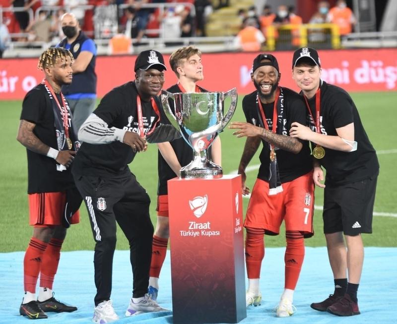 Ziraat Türkiye Kupası finalinde Fraport TAV Antalyaspor'u 2-0 mağlup eden Beşiktaş, 10. kez kupayı kazandı. Süper Lig'i de şampiyon olarak tamamlayan Beşiktaşlı futbolcuların mutluluğu ise görülmeye değerdi. ''İki kupa tek şampiyon Beşiktaş'' yazılı tişört giyen siyah-beyazlılar, tribünlerdeki taraftarlarıyla kupa zaferini kutladı.
