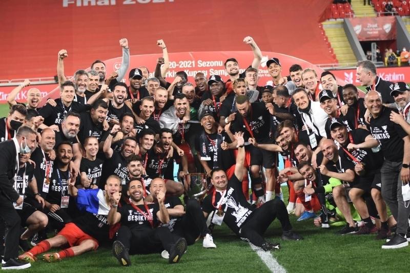 Ziraat Türkiye Kupası finalinde Fraport TAV Antalyaspor'u 2-0 mağlup eden Beşiktaş, 10. kez kupayı kazandı. Süper Lig'i de şampiyon olarak tamamlayan Beşiktaşlı futbolcuların mutluluğu ise görülmeye değerdi. ''İki kupa tek şampiyon Beşiktaş'' yazılı tişört giyen siyah-beyazlılar, tribünlerdeki taraftarlarıyla kupa zaferini kutladı.