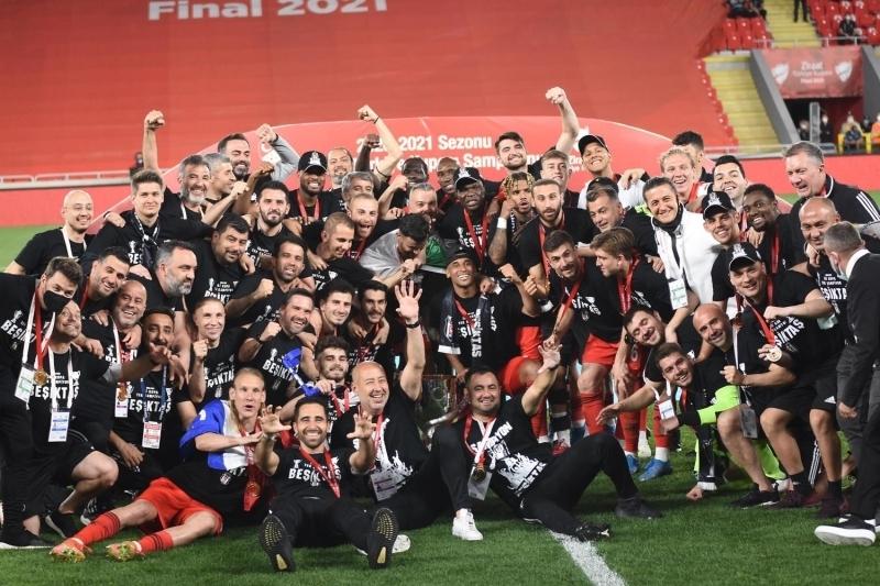 Ziraat Türkiye Kupası finalinde Fraport TAV Antalyaspor'u 2-0 mağlup eden Beşiktaş, 10. kez kupayı kazandı. Süper Lig'i de şampiyon olarak tamamlayan Beşiktaşlı futbolcuların mutluluğu ise görülmeye değerdi. ''İki kupa tek şampiyon Beşiktaş'' yazılı tişört giyen siyah-beyazlılar, tribünlerdeki taraftarlarıyla kupa zaferini kutladı.