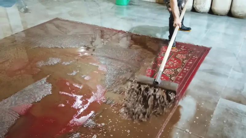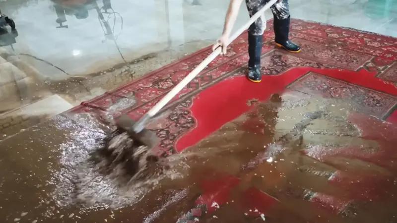 Evi taşan kanalizasyon suları altında kalan adamın getirdiği halının son hali görenlerin aklını başından aldı. İşte saatlerce süren temizliğin milyonlarca kez izlenen görüntüleri...