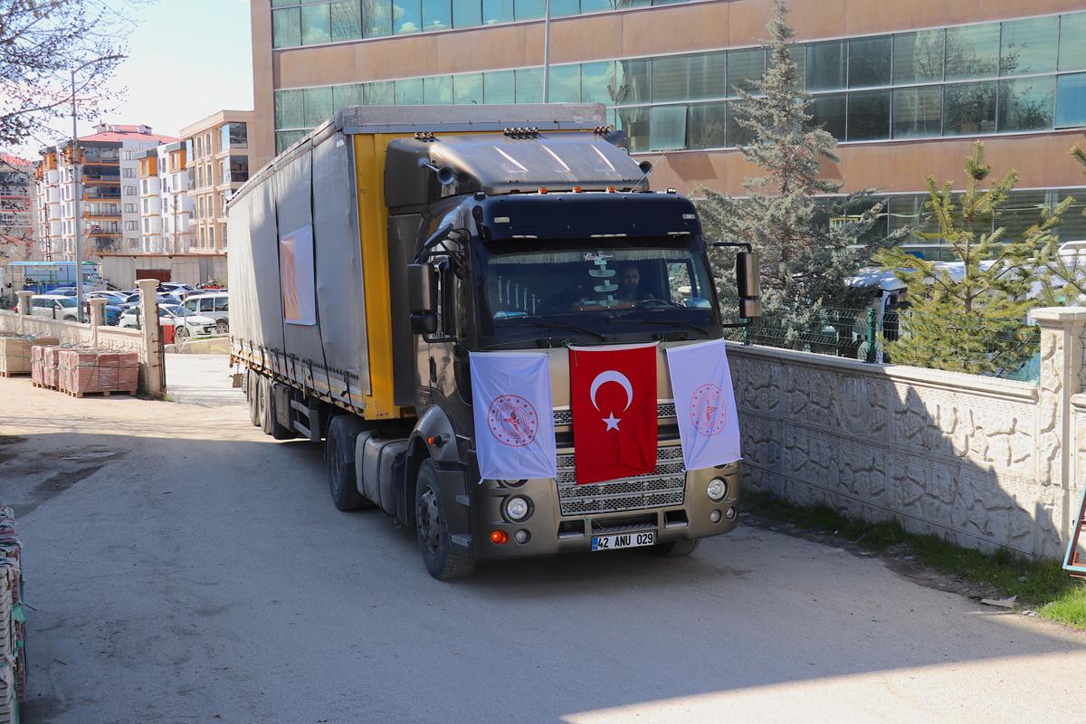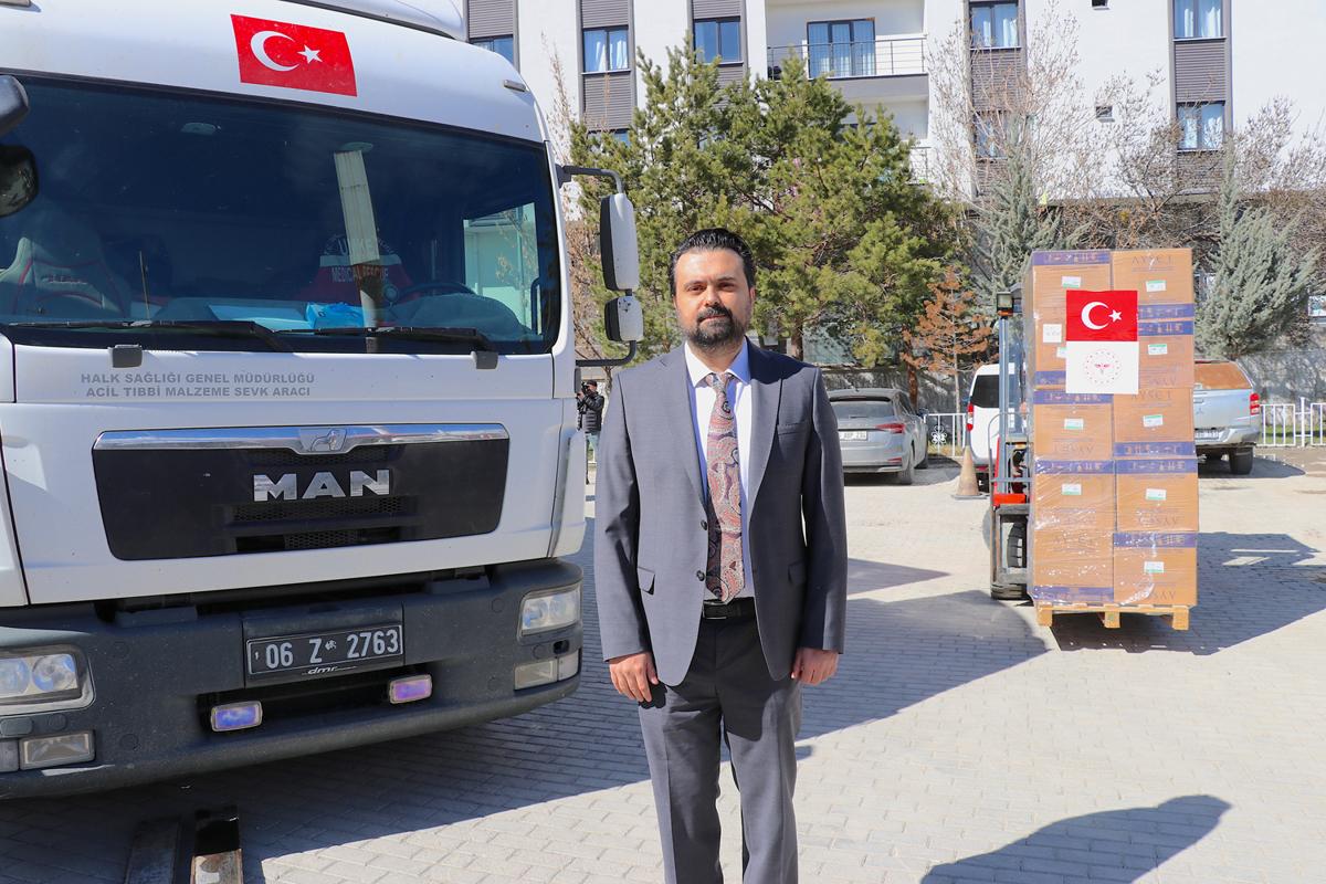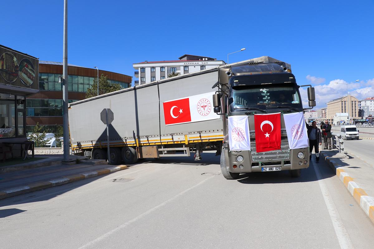 <meta name="description" content="Türkiye'den İran'a gönderilen tıbbi yardım malzemesi yüklü 3 tır Van'dan yola çıktı. İl Sağlık Müdürü Muhammed Tosun, 'Gece gelen talimat doğrultusunda tırların bugün karşı tarafa geçirilmesi bizlere iletildi.' dedi. " />