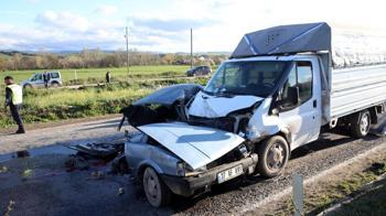 <title>Kamyonetle çarpışan otomobil ikiye bölündü: Sürücü hayatını kaybetti </title>