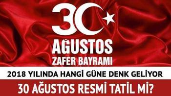 <meta name="description" content="30 Ağustos, Zafer Bayramı olması sebebiyle resmi tatil olarak kabul edilmektedir. Bu sene Perşembe gününe denk gelen 30 Ağustos'ta kamu kurum ve kuruluşları, tüm devlet dairleri ve bankalar resmi tatil kapsamında çalışmayacak." />