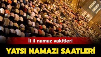 <meta name="description" content="Yatsı namazı saati merak edilen konular arasında yer alıyor. Yatsı namazı vakti saat kaçta&quot; Müslümanlar namaz vakitlerini yakından takip ediyorlar. Namaz kılmak isteyen vatandaşlar, Diyanet İşleri Başkanlığı tarafından yayınlanan saatleri öğrenmek istiyorlar. 8 Kasım’da Mevlid Kandili’nin idrak edilmesi ile beraber araştırmalar daha da hızlandı. Haberimiz içerisinden il il namaz vakitlerine ulaşabilirsiniz." />